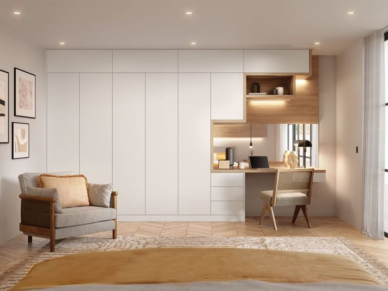 Our versatile slab design offers endless possibilities for crafting the perfect modern fitted bedroom wardrobes.
