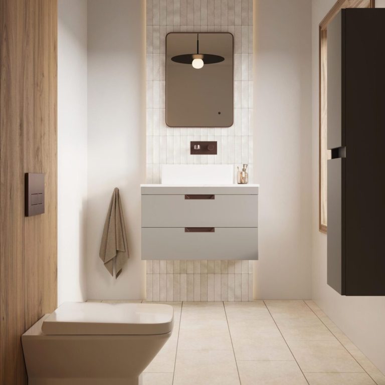 Beyond its chic aesthetic, Chevron is also highly practical. The wall-hung basin maximises floor space, making it perfect for compact bathrooms.