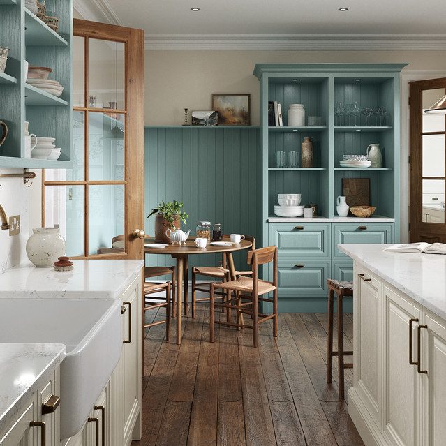 Our farmhouse-inspired kitchen design that exudes charm and character. With depth and presence, the Jarrow collection captures the essence of traditional styling while adding a touch of flair. This stunning 5-piece in-frame effect door features a raised centre panel, making it the perfect choice for those who appreciate classic elegance.
